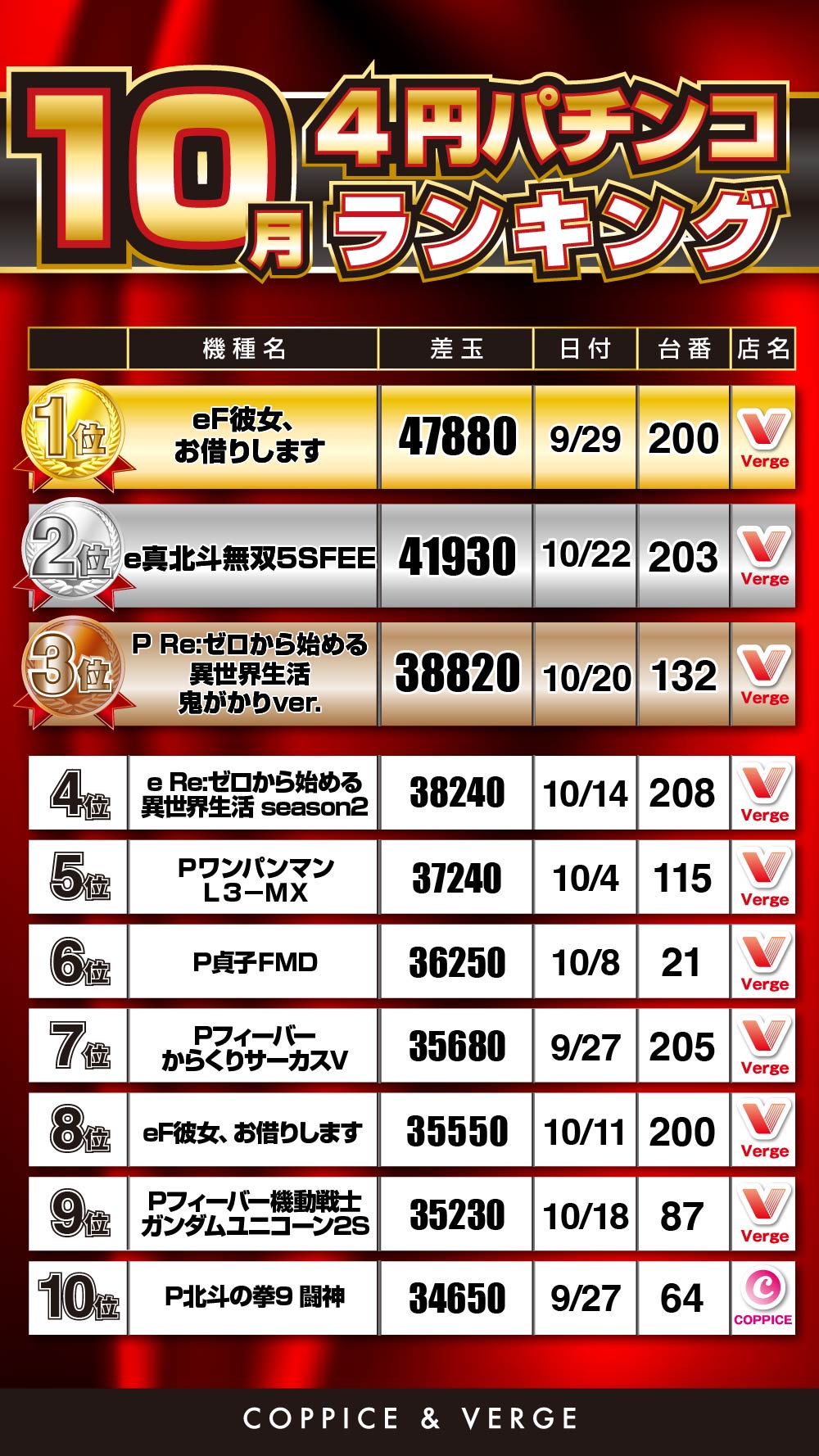 低貸玉パチンコ・スロットから王道の4パチ、20スロを設置